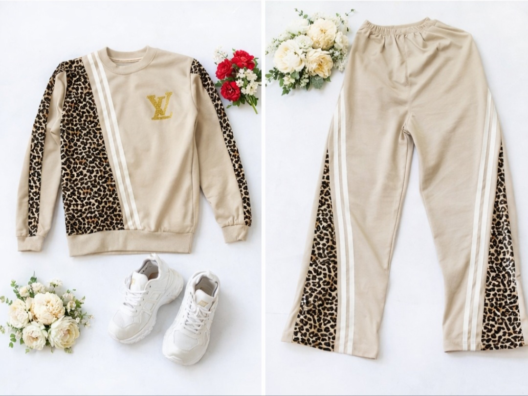 بلوز و شلوار نیم بگ طرح پلنگی LV
