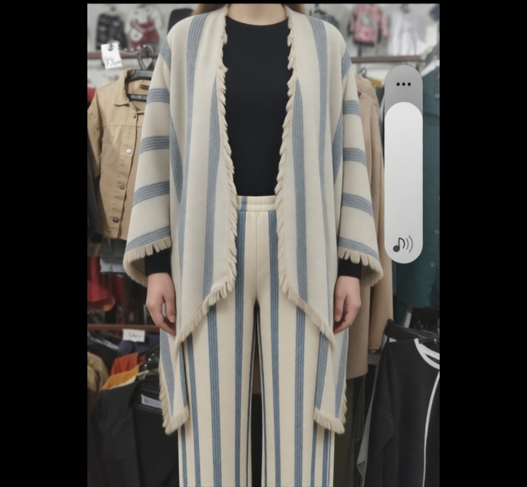 ست مانتو و شلوار راه راه کنفی