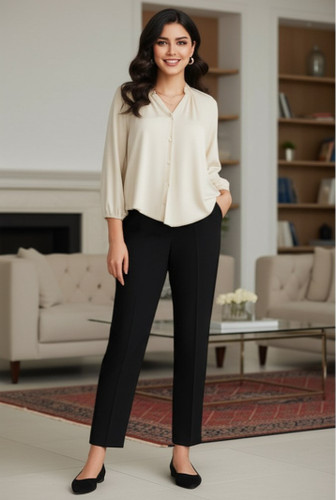 شلوار زنانه مزونی نیم بگ کرپ مازراتی دبل, پشت کش