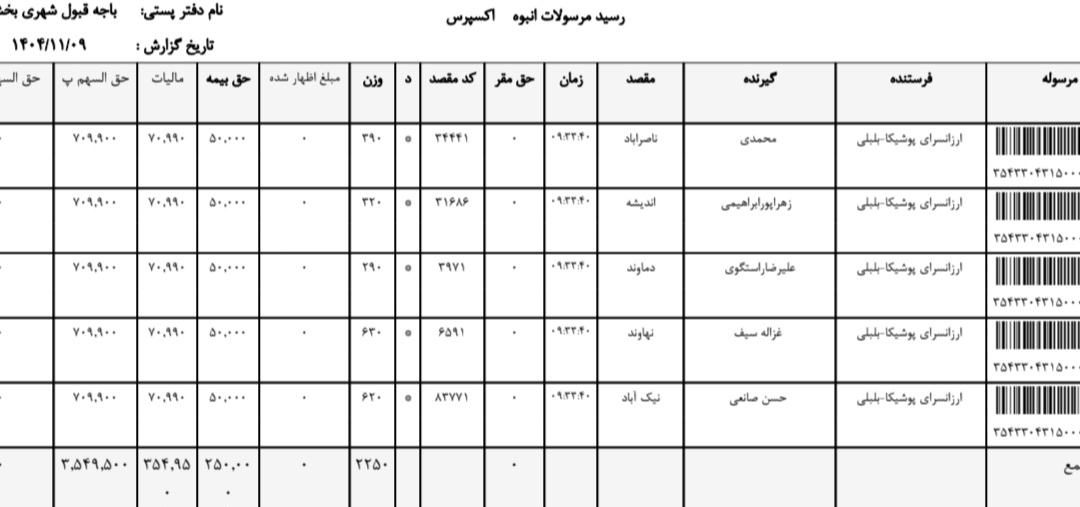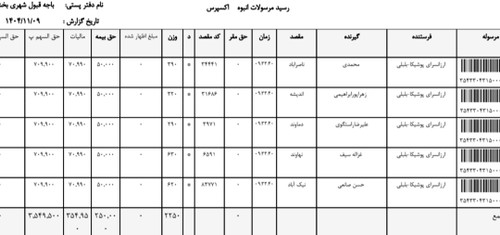 لیست کد مرسولات ارسالی های اداره پست از ۹بهمن تا ۶ اسفند