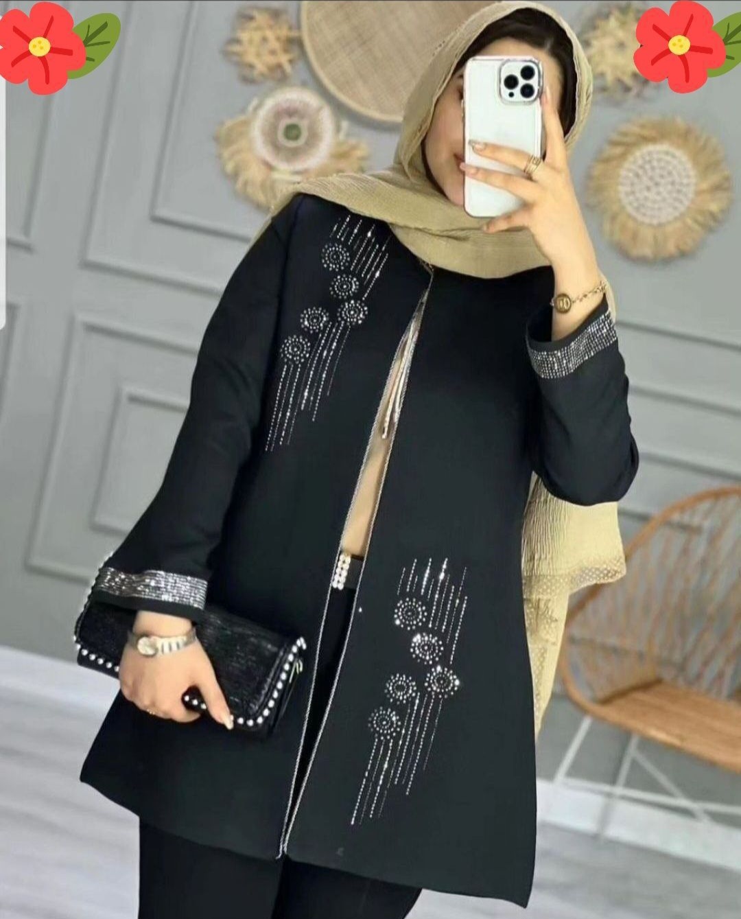 مانتو عبایی جواهر دوزی الیزه ، قواره دار