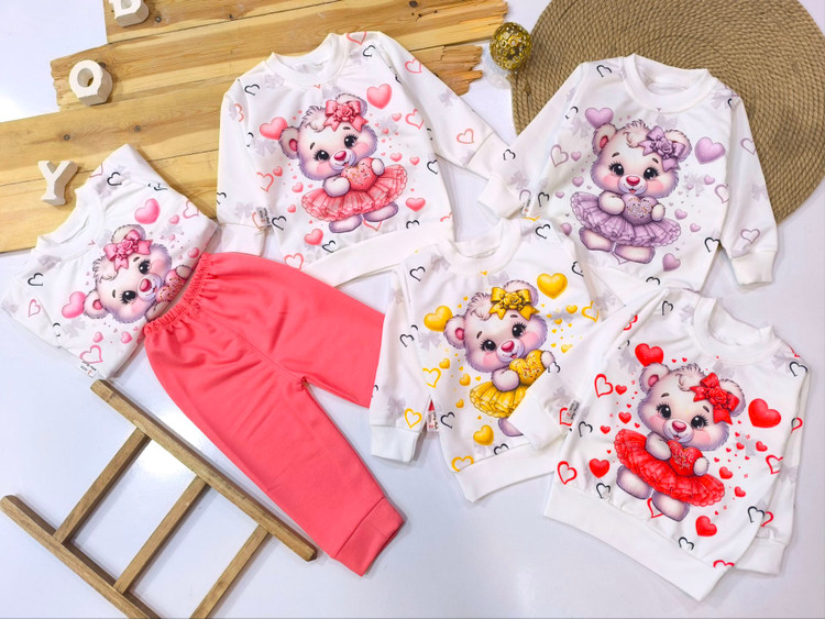 بلوز و شلوار نقلی دخترانه خرس پاپیون دار