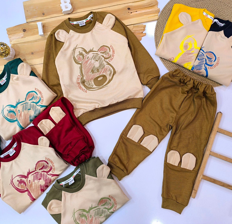 ست بلوز شلوار خرسی پسرانه کبریتی