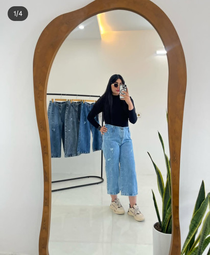 شلوار زنانه نیم بگ قد ۹۵ جین اصل