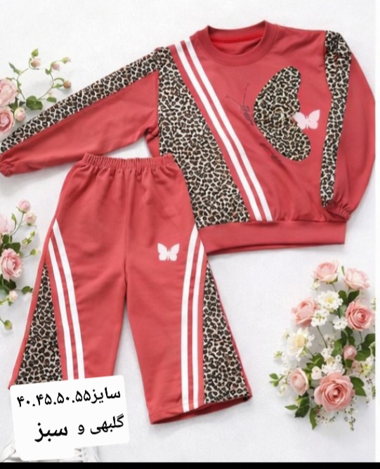 ست بلوز شلوار بگ پلنگی طرح پروانه